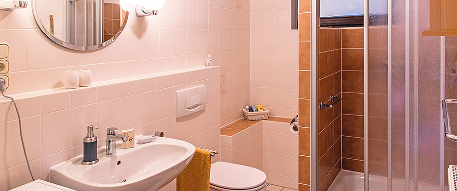 Im Duschbad mit WC befindet sich außerdem eine Waschmaschine.