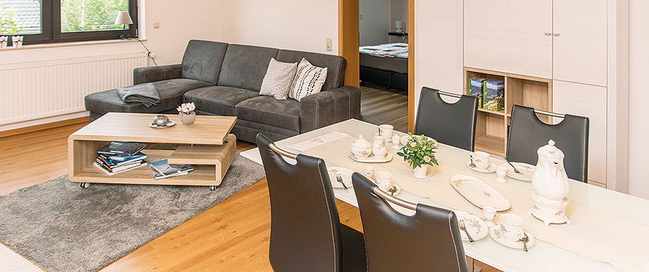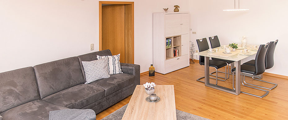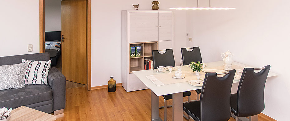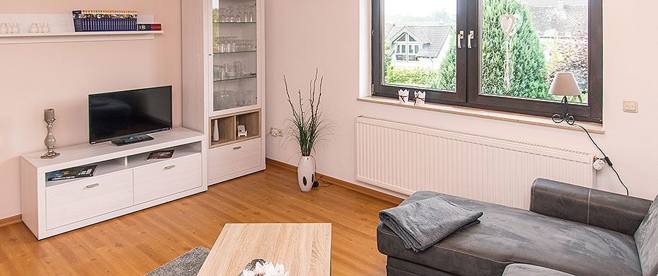Unsere renovierte Ferienwohnung bietet auf 55 Quadratmetern Platz für zwei Personen. Die Ferienwohnung Stoffels in Hillesheim, mitten in der Vulkaneifel gelegen, verfügt über ein Doppel-Schlafzimmer mit einem komfortablen Boxspringbett und einem Babyreisebett, ein geräumiges Wohn- und Esszimmer, Küche und Bad.